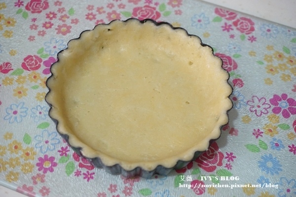 【7】用叉子在塔皮上戳幾個洞,可避免烘烤過程中塔皮膨脹。