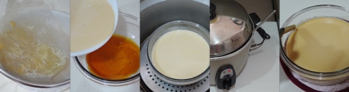 (想要布丁細緻點,可將蒸模上方用錫箔紙包覆住,戳幾個小洞)