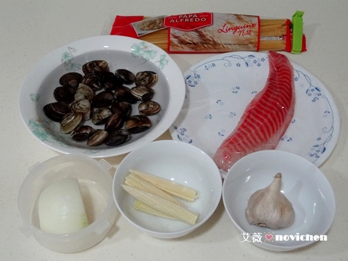 ♥ 艾薇廚房 ♥ 異國料理 ▌蒜味蛤蠣鯛魚義大利麵 ▌(步驟圖文版)